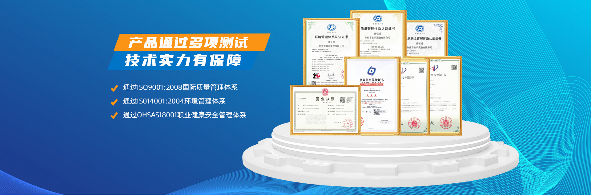 - 焦作市富泉塑膠有限公司,創(chuàng)立于1995年,是一家集研發(fā)、設計、生產(chǎn)、銷售為一體的大型管材企業(yè)。公司位于太極故里、黃河之濱一一河南焦作溫縣。公司占地128畝,現(xiàn)有職工210余人,其中具有中技術職稱的19人。生產(chǎn)、檢驗設備58臺(套),包括PVC實壁管生產(chǎn)線11套、PE實壁管生產(chǎn)線12套、HDPE雙壁波紋管生產(chǎn)線6套、PVC雙壁波紋管生產(chǎn)線5套,檢驗設備14臺(套)。主要產(chǎn)品有:Φ20mm-630mm、各種壓力規(guī)格的PVCU、PVC-M、PE給水管材,PVC-U節(jié)水灌溉管材,HDPE燃氣和礦用管材,DN200-800mm的HDPE、PVC雙壁波紋管及各種噴灌、滴灌工程材料。承接大中型市政供排水、飲水安全及節(jié)水灌溉等工程?! 「蝗苣z公司重視產(chǎn)品的質(zhì)量、安全、環(huán)保和節(jié)能,在同行業(yè)中率先完成了“新華節(jié)水產(chǎn)品認證”,全方面通過ISO9001:2008國際質(zhì)量管理體系、IS014001:2004環(huán)境管理體系和OHSAS18001職業(yè)健康安全管理體系的一體化導入,并建立起規(guī)范的現(xiàn)代企業(yè)管理體系。公司以“質(zhì)量”為先導,采用質(zhì)量跟蹤、多環(huán)節(jié)把關的方法,組建具有行業(yè)水準的企業(yè)技術檢測中心,常年委托水利部節(jié)水灌溉設備檢測中心、河南省產(chǎn)品質(zhì)量監(jiān)督檢驗院對產(chǎn)品跟蹤檢測,并由中國人民保險公司承保產(chǎn)品質(zhì)量。公司連續(xù)多年被河南省水利廳確定為“安全飲水設備、節(jié)水灌溉設備”定點生產(chǎn)企業(yè),并獲得“中國名優(yōu)產(chǎn)品”“質(zhì)量、服務、信譽AAA企業(yè)”“河南省**產(chǎn)品”“河南省水利企業(yè)”“河南省守合同、重信用企業(yè)”等榮譽稱號?! 「蝗苣z公司堅持“用戶為上”的服務理念,長期以來,全方面關注客戶價值,不斷提升服務水平。服務隊伍常年為客戶的產(chǎn)品設計、施工、安裝提供合理的方案和全程細致、周到、**、快捷的技術服務。公司自成立以來,一直堅持以人為本的宗旨,塑造企業(yè)形象,并致力于新產(chǎn)品的開發(fā),憑借雄厚的技術開發(fā)能力,先進的工藝制造流程,嚴格的質(zhì)量管理保證體系,優(yōu)良的售后服務網(wǎng)絡,已成為河南省大的飲水、灌溉及排水管材設備制造商。產(chǎn)品暢銷全國,而且還以公司雄厚的綜合實力在業(yè)界中占據(jù)著重要的地位。